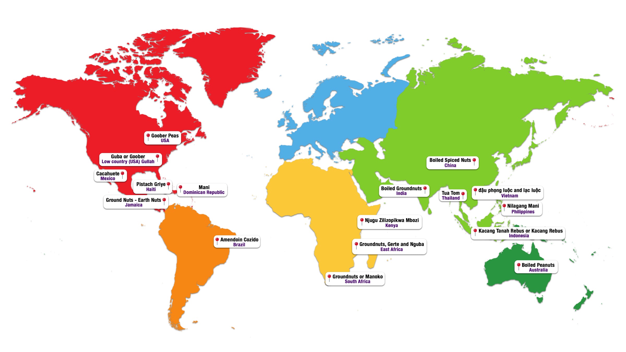 Discover the many names of boiled peanuts as they are enjoyed across different continents.