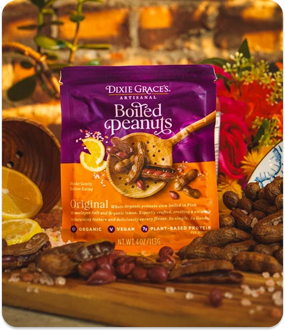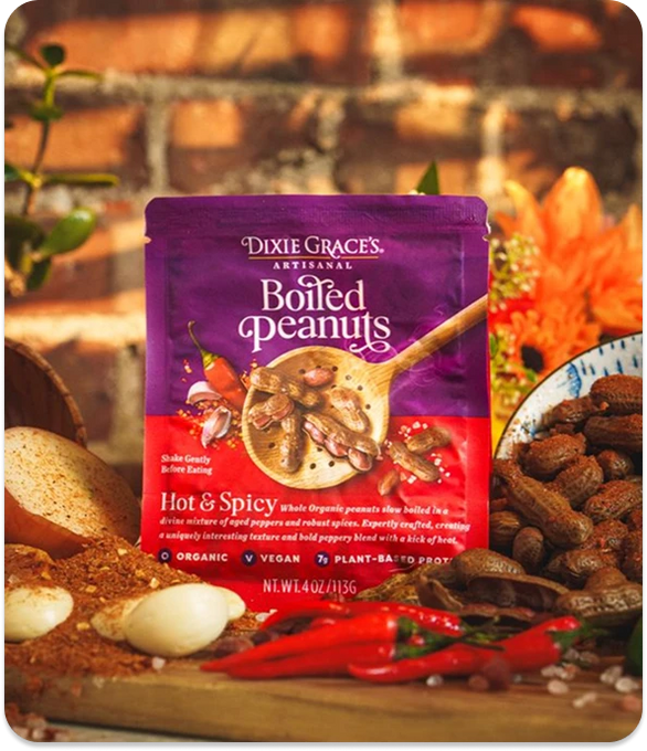 Fall in love with a treasured global comfort food – artisanal organic boiled peanuts, crafted the Dixie Grace Way.
