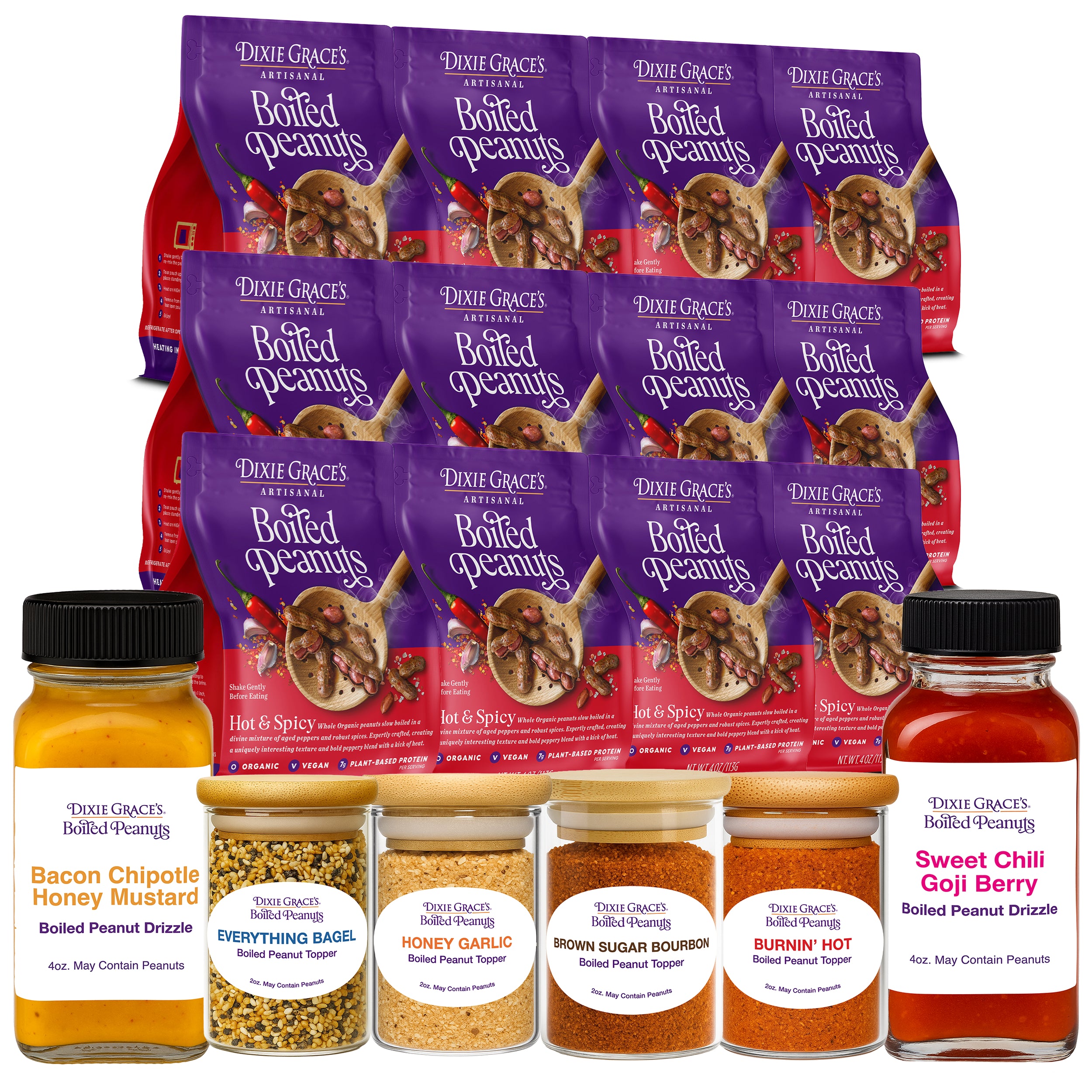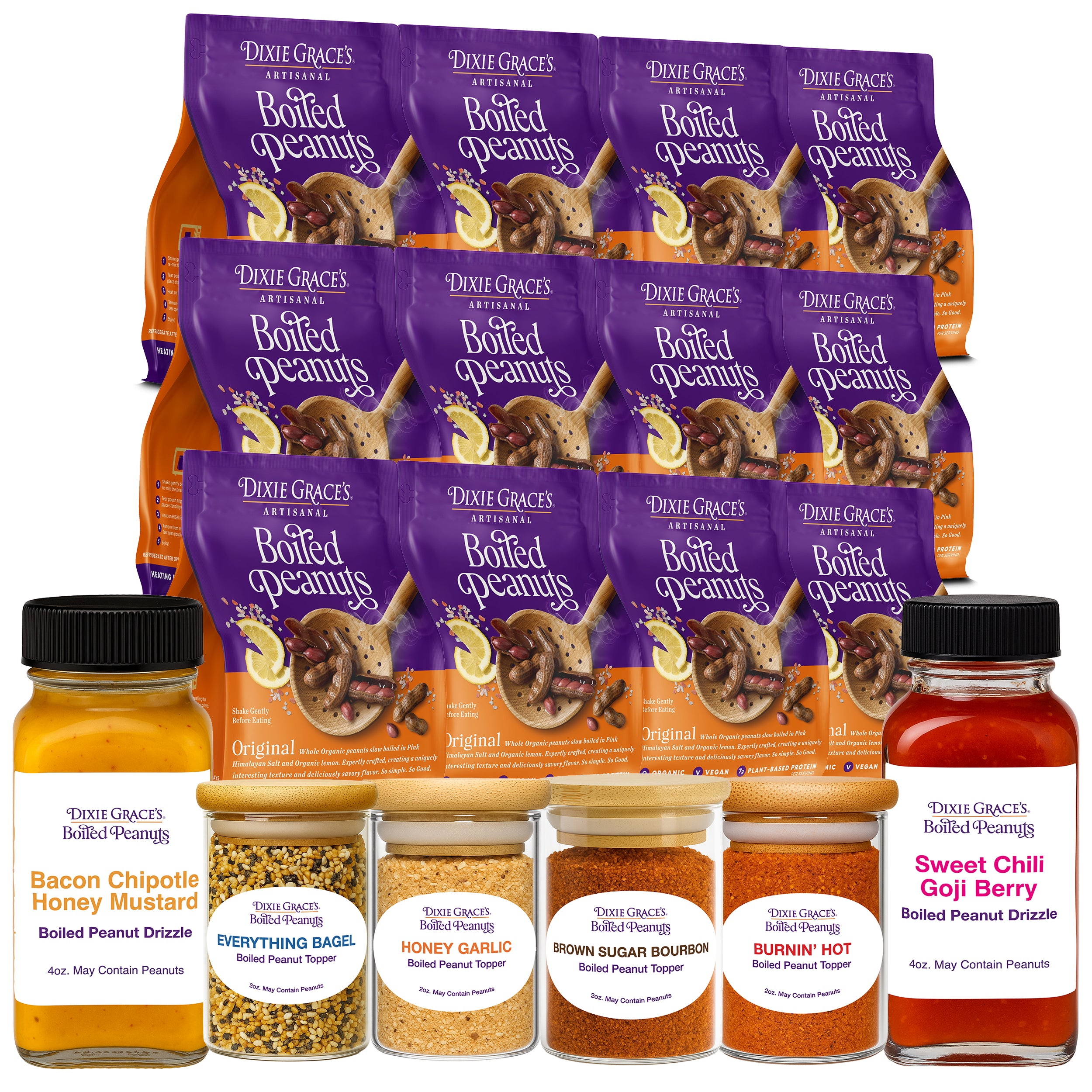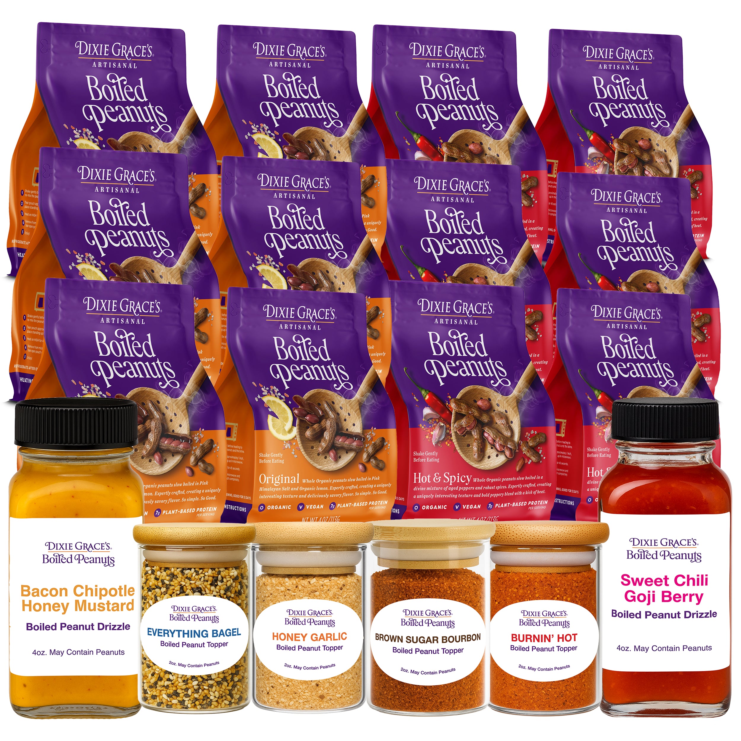Our Signature Toppers & Drizzles turn every handful into a gourmet joyride—four bold, sprinkle-happy seasonings and two rich, saucy drizzles crafted to dazzle your taste buds. Crunchy, zesty, saucy, and oh-so-satisfying… it’s snack time, leveled up.